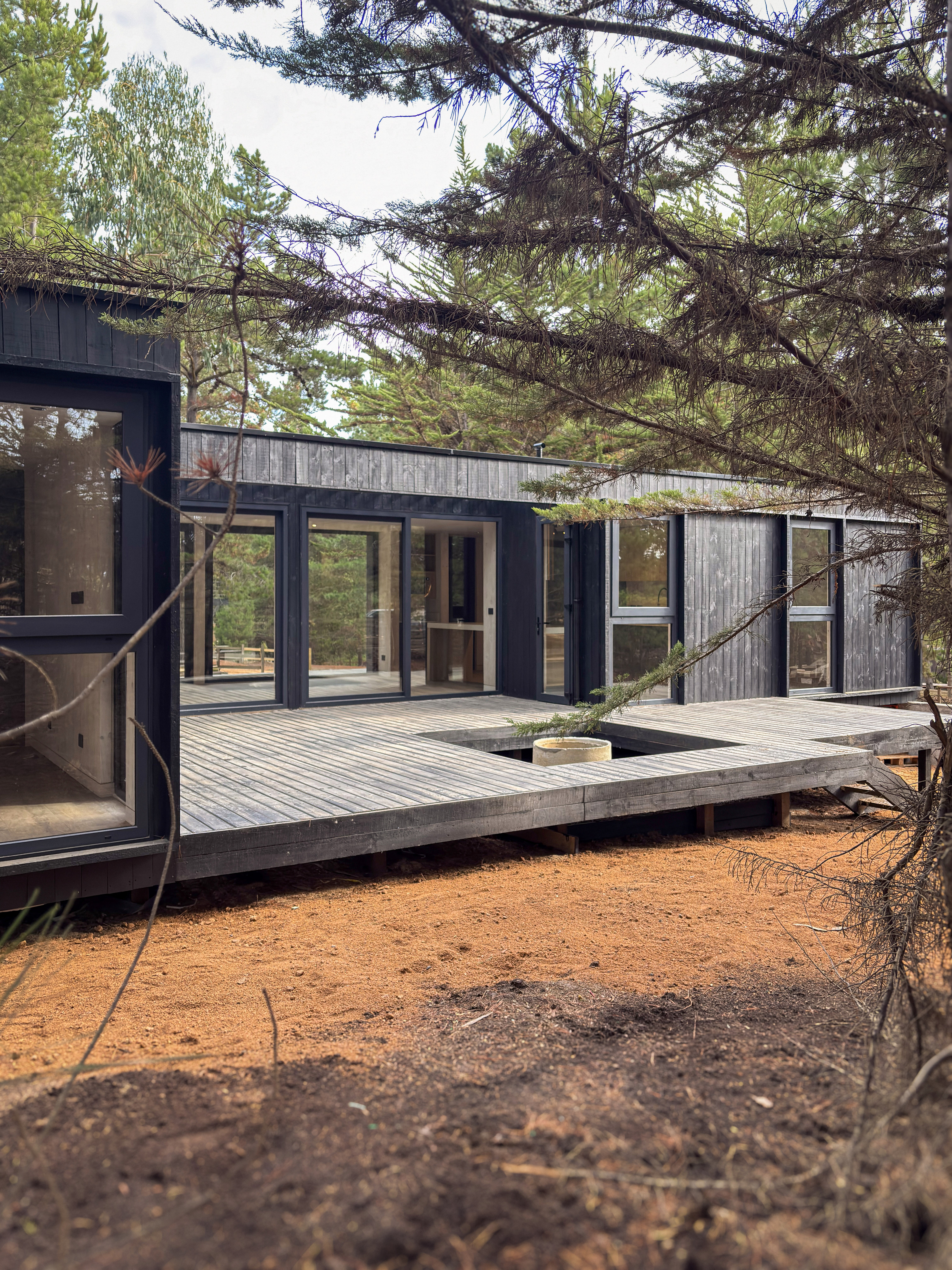 Casa construida por Mod Journey en el bosque del Condominio Surflodge en Pichilemu, emplazada entre árboles nativos y a minutos de las olas de Punta Lobos. Diseñada con un lenguaje mediterráneo reinterpretado, la vivienda acoge a tres generaciones —abuela, madre y nieto— en una propuesta que une tradición familiar y vida en la naturaleza. Su organización privilegia espacios amplios, luz suave y una conexión directa con el exterior, donde un fogón posterior se convierte en el punto de encuentro bohemio y místico del proyecto. Una casa tranquila, cálida y pensada para vivir la unidad familiar lejos del bullicio y dentro del bosque.